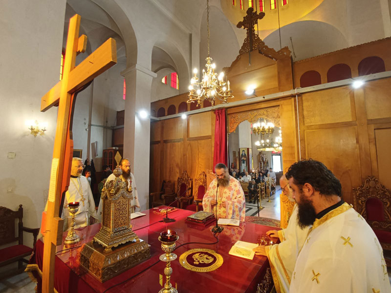 Της Αρχιερατικής Θείας Λειτουργίας προεξήρχε ο Αρχιμανδρίτης Κύριλλος, ιεροκήρυκας της Ιεράς Μητροπόλεως Λάρισας και Τυρνάβου, πλαισιωμένος από τους ιερείς της πόλης. Πλήθος πιστών προσήλθε για να τιμήσει τη μνήμη του Αγίου και να προσευχηθεί, αποτίοντας φόρο τιμής στο μαρτύριό του για την πίστη.