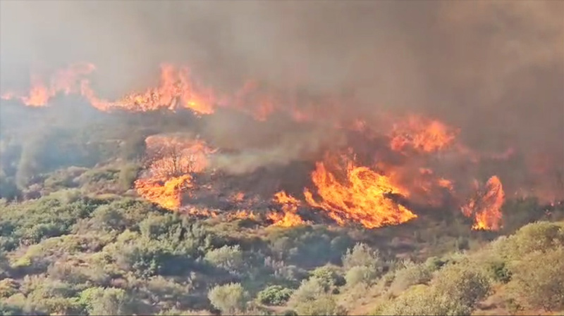 Ενδεικτική της κρισιμότητας της κατάστασης είναι η δήλωση κατοίκου της περιοχής που είπε νωρίτερα στο evima.gr: «η φωτιά είναι μια ανάσα από τα σπίτια μας. Βλέπουμε τις φλόγες».