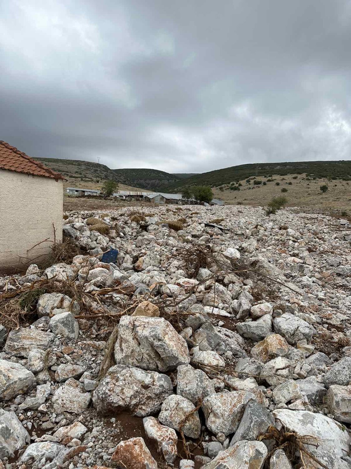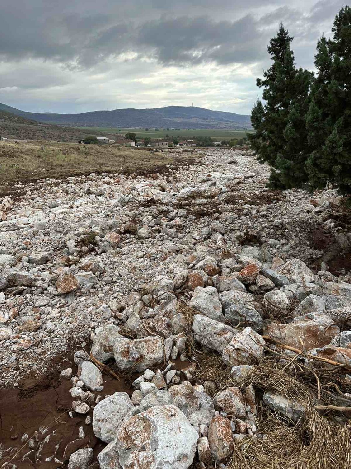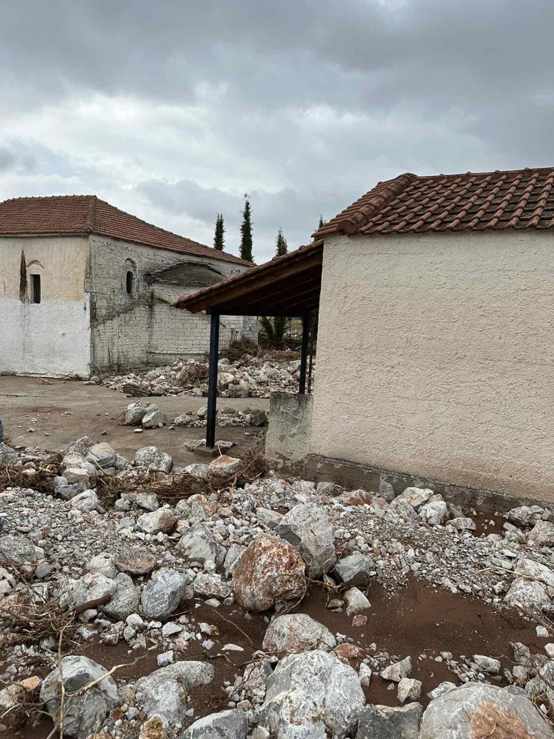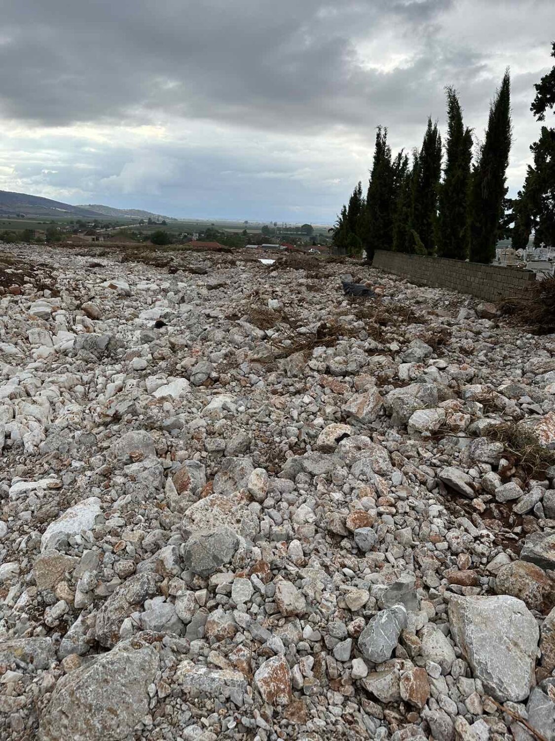 Έχουν μαζευτεί σωροί από κλαδιά, πέτρες και φερτά υλικά ανάμεσα στους τάφους και έχουν προκληθεί σημαντικές ζημιές στο κοιμητήριο.