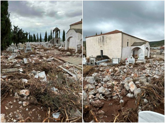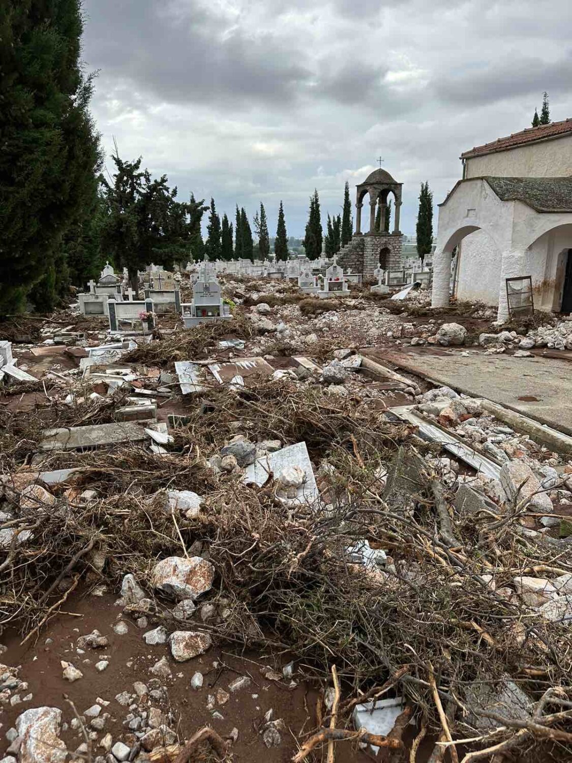 Εικόνες αποκάλυψης στο νεκροταφείο των Βρυσιών, άφησε πίσω της η κακοκαιρία “Daniel”