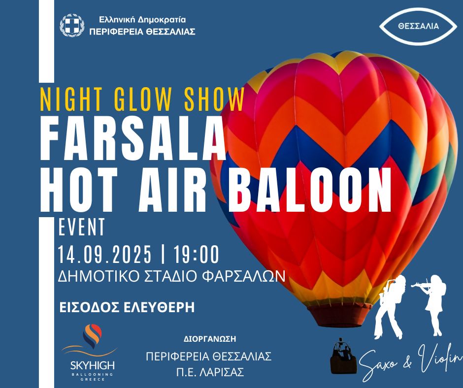 Το Δημοτικό Στάδιο Φαρσάλων θα φιλοξενήσει ένα μοναδικό βραδινό show με αερόστατα , που υπόσχεται εικόνες μαγείας και συγκινήσεις κάτω από τον θεσσαλικό ουρανό.