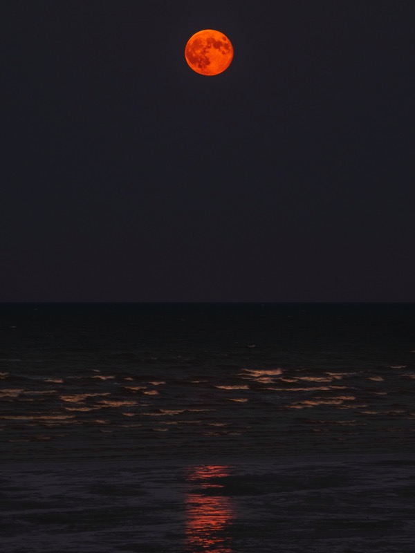 Το φεγγάρι φαίνεται πορτοκαλί όποτε είναι κοντά στον ορίζοντα, έτσι κατά την ανατολή και δύση του φεγγαριού. Το αποτέλεσμα είναι στο πιο επιβλητικό όταν είναι πανσέληνος, εν μέρει επειδή εμφανίζεται σε ένα λυκόφως.