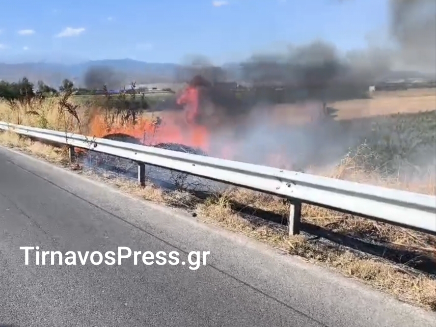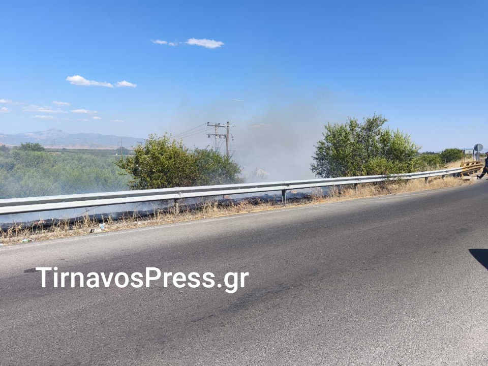 Φωτιά ξέσπασε πριν από λίγη ώρα στην είσοδο του Τυρνάβου, προκαλώντας αναστάτωση στους κατοίκους και στους διερχόμενους οδηγούς.