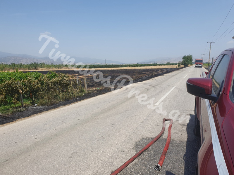 Φωτιά ξέσπασε πριν λίγες ώρες στον δρόμο Τυρνάβου – Δελερίων σε καλαμιές και ξερά χόρτα.