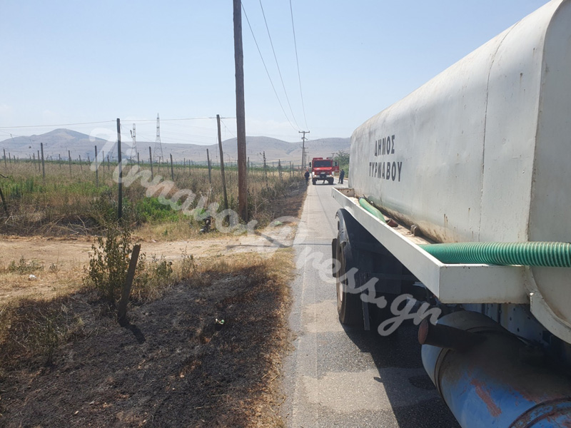 Άμεσα έσπευσαν 4 πυροσβεστικά οχήματα με 8 πυροσβέστες και η υδροφόρα του Δήμου Τυρνάβου με την πολιτική προστασία.