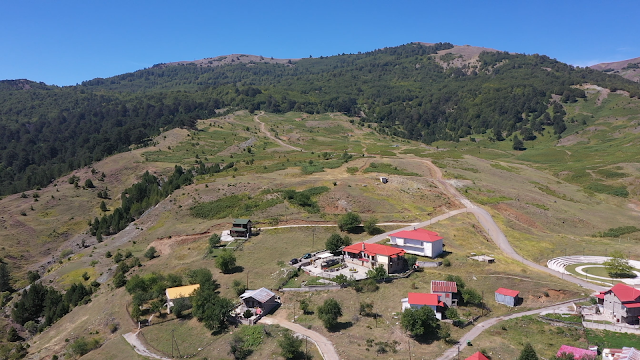 Οι γύρω πλαγιές της Βόρειας Πίνδου είναι κατάφυτες από οξιές, πεύκα και έλατα.