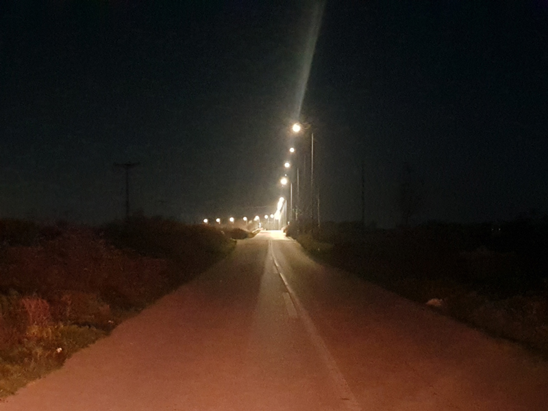 Με φωτορυθμικά σε χορό μοιάζουν τα φώτα που αντικρίζουν οι διερχόμενοι οδηγοί την νύχτα στην γέφυρα από Βρυότοπο προς Ροδιά.