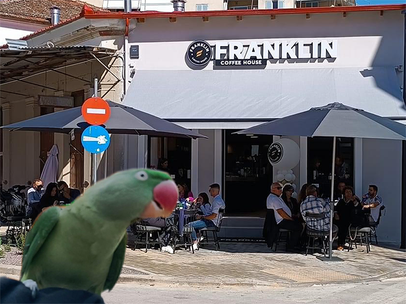 Το φιλικό, ευχάριστο και προσεγμένο περιβάλλον και service, σε συνδυασμό με την τεράστια ποικιλία σε αλμυρά και γλυκά σνακ για κάθε στιγμή της ημέρας, μας υπενθυμίζει πως η… λεπτομέρεια κάνει τη διαφορά! Δίπλα στην πολυσύχναστη πλατεία του Τυρνάβου, το Franklin, του Χάρη είναι εδώ για εσάς παρέα με ένα πανέμορφο παπαγάλο!