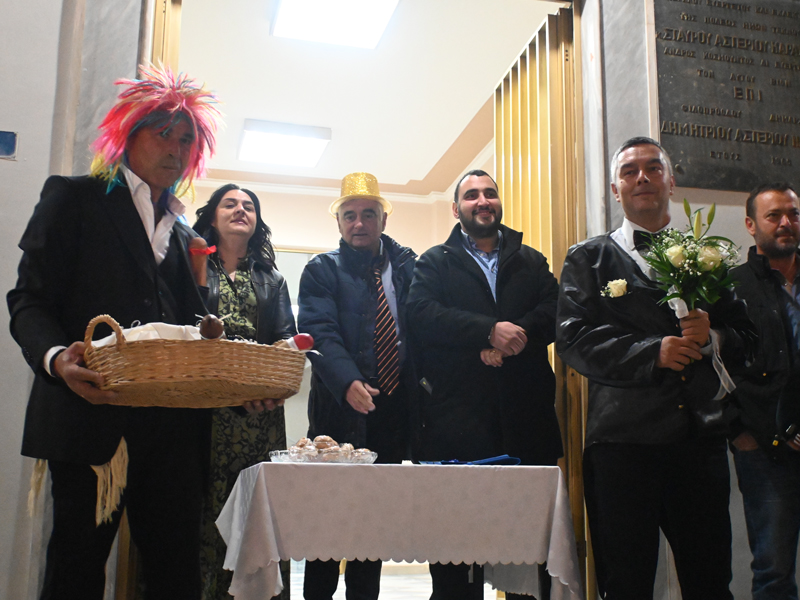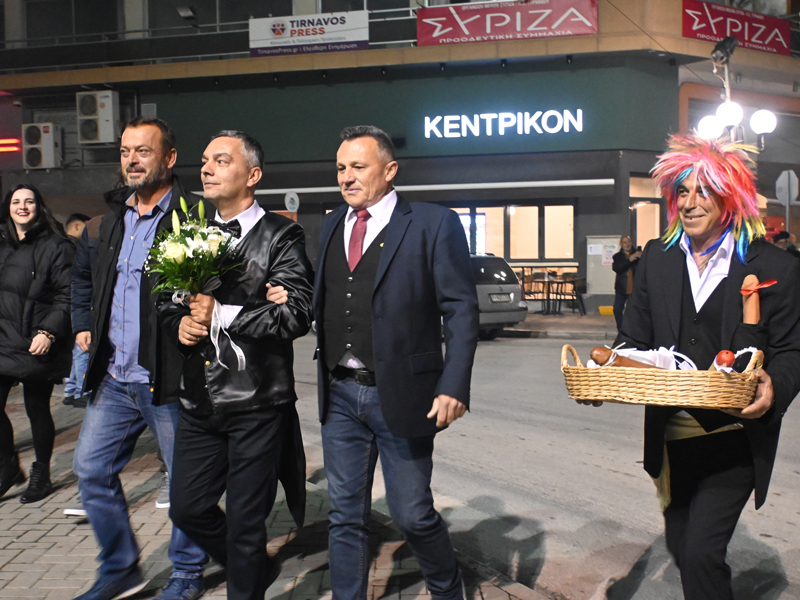 Συγκίνηση επικράτησε, ο κόσμος ενθουσιασμένος ήρθε να τιμήσει το ζεύγος. Ο πολιτικός έγινε στην είσοδο του Δημαρχείου Τυρνάβου από τον Γιάννη Ταουσάνη, τον πρόεδρο της κοινότητας Τυρνάβου Κώστα Πατσίκα και την Αντιδήμαρχο Πολιτισμού Ευγενία Μαμανού.