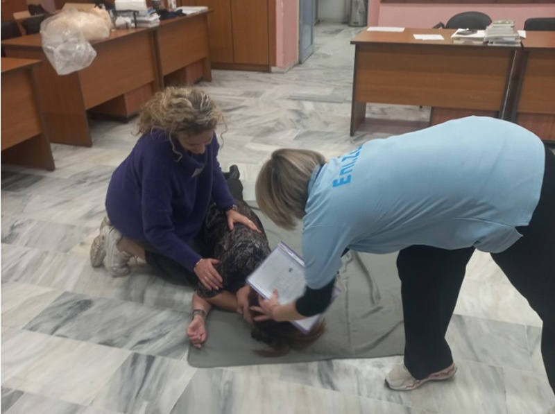• Επίδειξη και πρακτική εξάσκηση στην τοποθέτηση σε πλάγια θέση Ασφαλείας (ανάνηψης) και Επίδειξη και πρακτική εξάσκηση στην αντιμετώπιση πνιγμονής από ξένο σώμα.