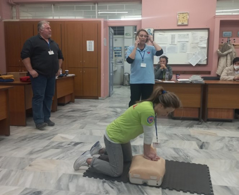 • Επίδειξη δεξιοτήτων Καρδιοπνευμονικής Αναζωογόνησης με Αυτόματο Εξωτερικό Απινιδωτή (σενάριο σε πραγματικό χρόνο), Διάλεξη για την καρδιοπνευμονική Αναζωογόνηση, Πρακτική εξάσκηση Καρδιοπνευμονικής Αναζωογόνησης σε εκπαιδευτικά προπλάσματα (κούκλες) σε ολιγομελείς ομάδες των συμμετεχόντων εκπαιδευομένων.