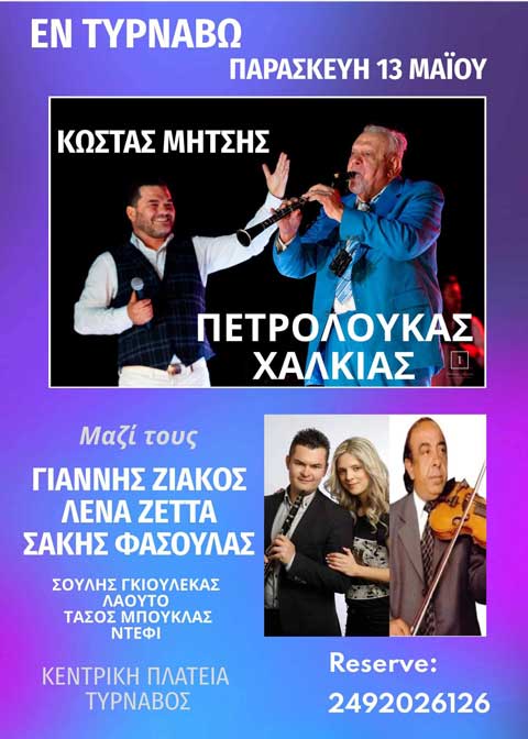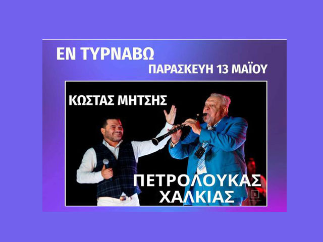 Γλέντι την Παρασκευή 13 Μάϊου στο Εν Τυρνάβω με Πέτρο Λουκά Χαλκιά