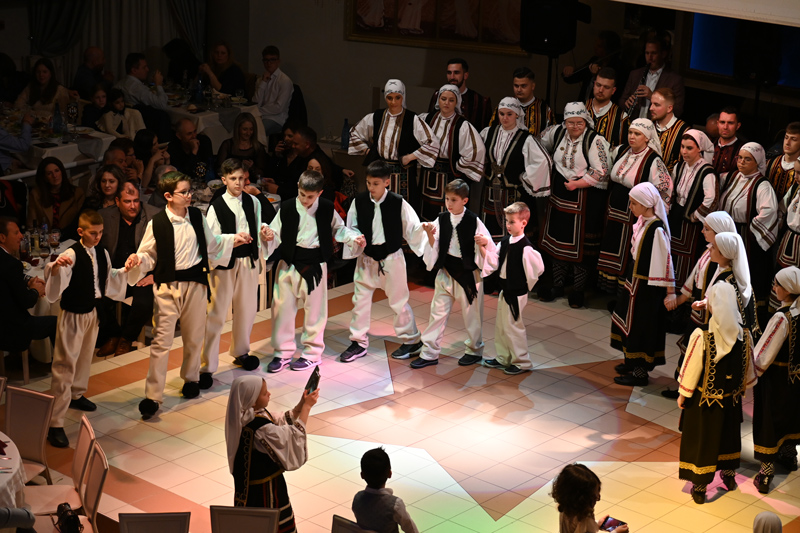 Οι μικροί συνεχιστές της παράδοσης ζέσταναν την βραδιά με τους χορούς τους ενώ ακολούθησαν οι μεγαλύτεροι οι οποίοι καταχειροκροτήθηκαν χορεύοντας με τον φλάμπουρα, με ζωηρές χορευτικές φιγούρες και αναπηδήσεις εκφράζοντας την τόλμη, τη λεβεντιά και την ορμητικότητα των Σαρακατσάνων.