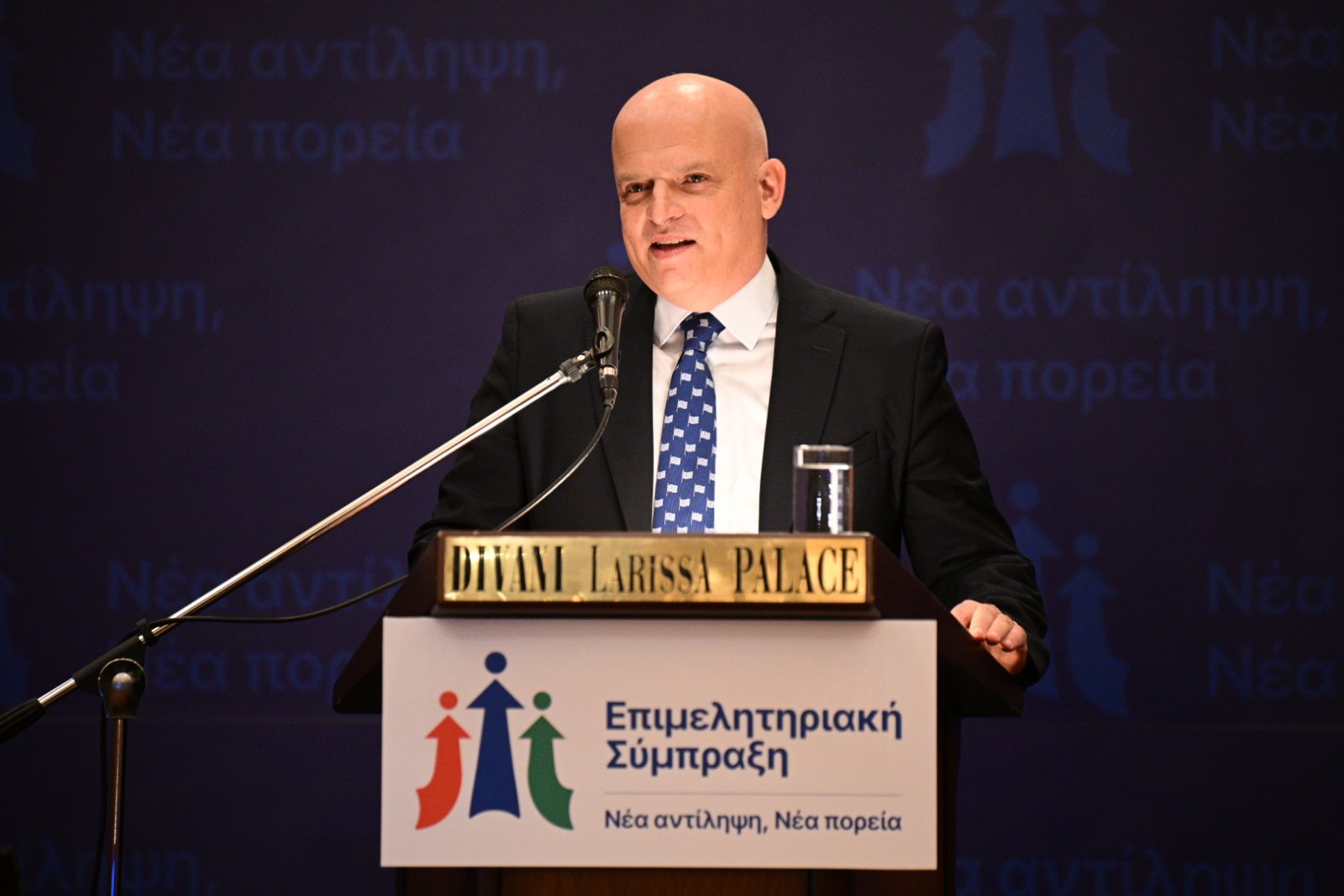 Σε ότι αφορά την πρωτοφανή – για τα τοπικά δεδομένα – σύμπραξη τριών παρατάξεων στο Επιμελητήριο, εξήγησε ότι «η «Επιμελητηριακή Σύμπραξη» είναι το αποτέλεσμα μίας πλατιάς συνεργασίας υγιών δυνάμεων από το χώρο της επιχειρηματικότητας απ’ όλο το νομό Λάρισας. Πολιτικά είναι ετερόκλητη, γιατί πολύ απλά οι πεποιθήσεις του καθενός δεν μας δεσμεύουν. Αντίθετα, για εμάς πυξίδα είναι οι τοπικές ανάγκες της επιχειρηματικότητας».