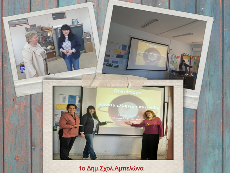 Στις 29 Μαρτίου το Greektoys ταξίδεψε στο 1ο Δημοτικό Σχολείο Αμπελώνα για να φέρει κοντά στα παιδιά τα αρχαία ελληνικά παιχνίδια.