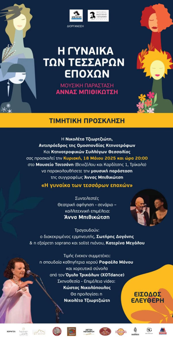 Η Μουσική παράσταση «Η Γυναίκα Τεσσάρων Εποχών» είναι ένα αφιέρωμα στη γυναικεία ψυχή που μεταμορφώνεται, ωριμάζει, ανθίζει και αντέχει – όπως η φύση στις τέσσερις εποχές του χρόνου…μια ζωή…