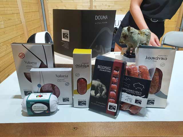 Στη φάρμα ζουν και τρέφονται βίσωνες που είναι οι μοναδικοί των Βαλκανίων και από τους λίγους της Ευρώπης, μαύροι χοίροι που βόσκουν αποκλειστικά σε 8.000 βιολογικά πιστοποιημένα στρέμματα και τρέφονται με βελάνια και βολβούς και κατσίκια από την φυλή Μουρθιάνο – Γραναδίνα, η οποία είναι αυτόχθονη ισπανική φυλή που οφείλει την ονομασία της στις περιοχές Μούρθια και Γρανάδα της Ισπανίας όπου και γίνεται η αναπαραγωγή της.