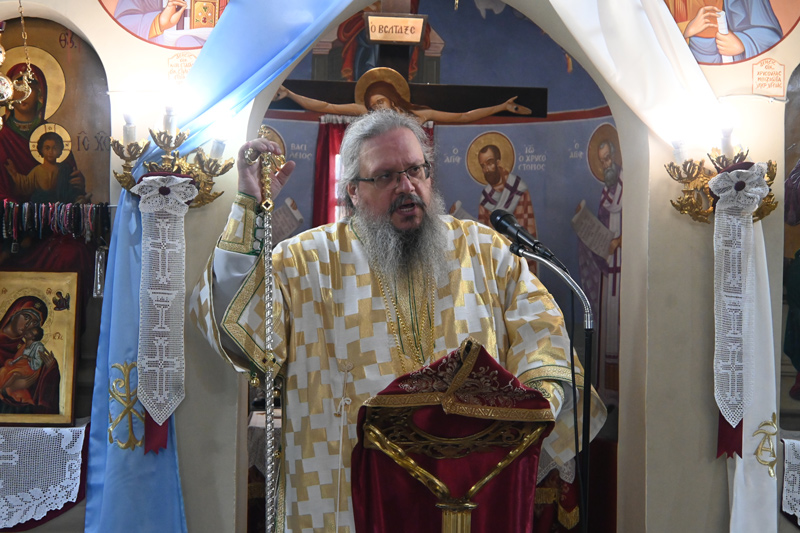 Λίγο πριν το Δι Ευχών ο Σεβασμιότατος αναφέρθηκε στην άδεια που έχει δοθεί για επισκευή του Μεγαλοπρεπούς μητροπολιτικού Ιερού Ναού Κοιμήσεως της Θεοτόκου του Αμπελώνα.