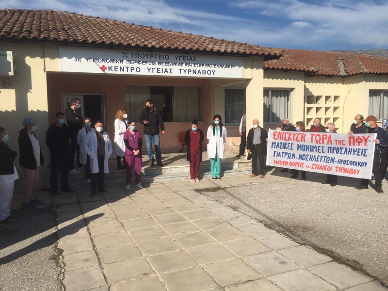 Ημέρα δράσης για την Π.Φ. Υγείας & οι εργαζόμενοι του Κέντρου Υγείας Τυρνάβου συγκεντρώθηκαν στον προαύλιο χώρο της δομής