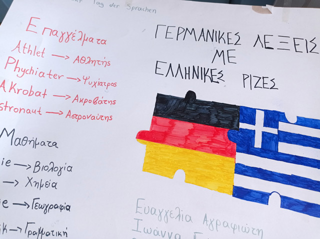 Στο μάθημα των Γερμανικών, οι μαθητές δημιούργησαν εργασίες γύρω από τις γλωσσικές οικογένειες, τις νοηματικές γλώσσες και τα χαρακτηριστικά της κάθε γλώσσας.