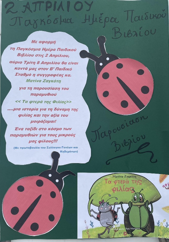 Με αφορμή την Παγκόσμια Ημέρα Παιδικού Βιβλίου (2 Απριλίου) φιλοξενήθηκε στο Β’ παιδικό σταθμό Τυρνάβου «Ν.Τσικριτσής» η συγγραφέας Ματίνα Ζαγκότη.