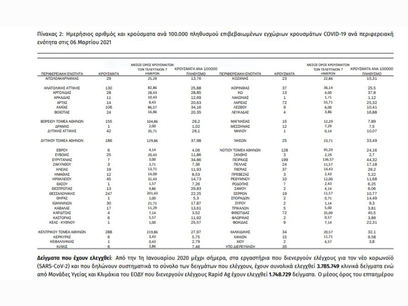 Ημερήσια έκθεση επιδημιολογικής επιτήρησης λοίμωξης από το νέο κορωνοϊό (COVID-19) 6.03.21
