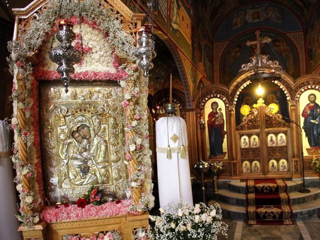 “Άξιον Εστίν ως αληθώς μακαρίζειν σε την Θεοτόκον την αειμακάριστον και παναμώμητον και Μητέρα του Θεού ημών”.