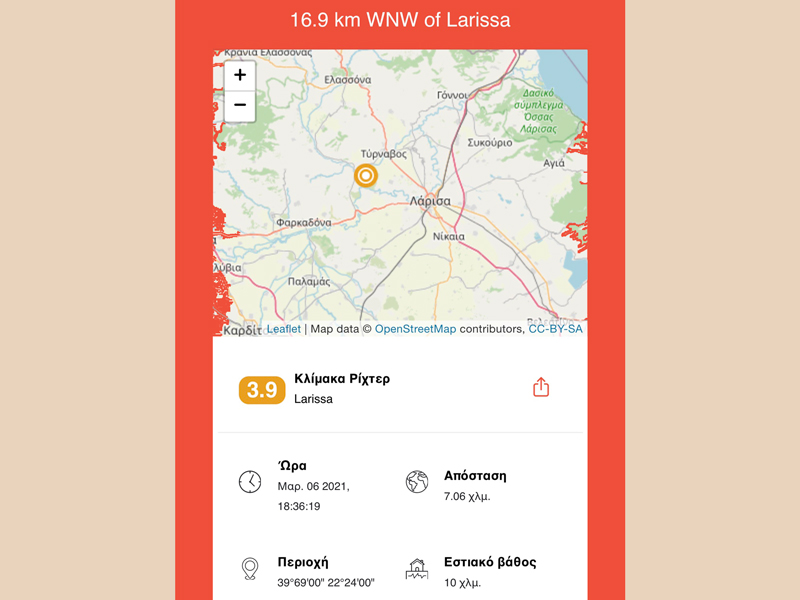 Ισχυρός μετασεισμός πριν λίγο με επίκεντρο κοντά στον Τύρναβο