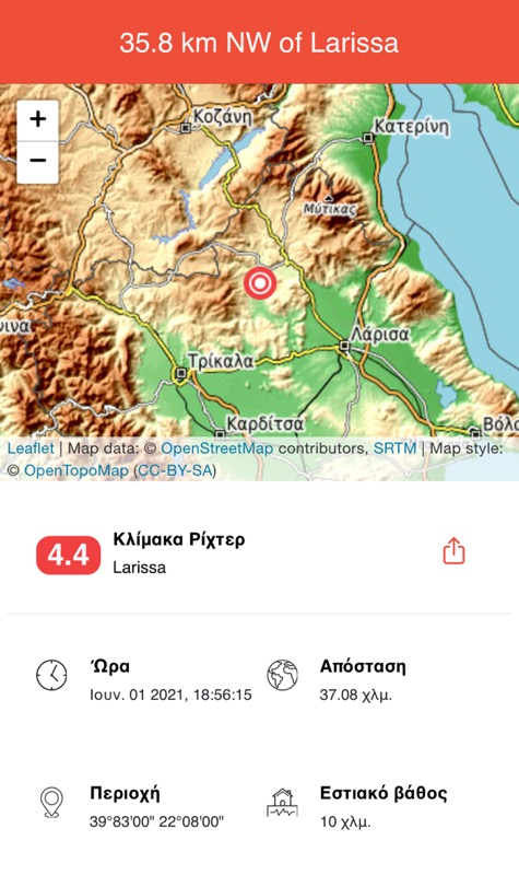 Ισχυρός σεισμός με μεγάλη διάρκεια ξύπνησε μνήμες. Ο σεισμός είχε εστιακό βάθος περι τα 10 χλμ. Πολλοί κάτοικοι στον Τύρναβο βγήκανε έξω από τα σπίτια τους.