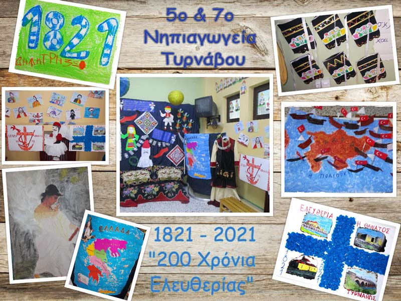 Στο πλαίσιο των δράσεων τιμής και μνήμης για τα 200 χρόνια από την Ελληνική Επανάσταση, τα 5ο και 7ο Νηπιαγωγεία Τυρνάβου ζωντανεύουν την ιστορία της Επανάστασης ,μέσα από τα μάτια των μικρών τους μαθητών.
