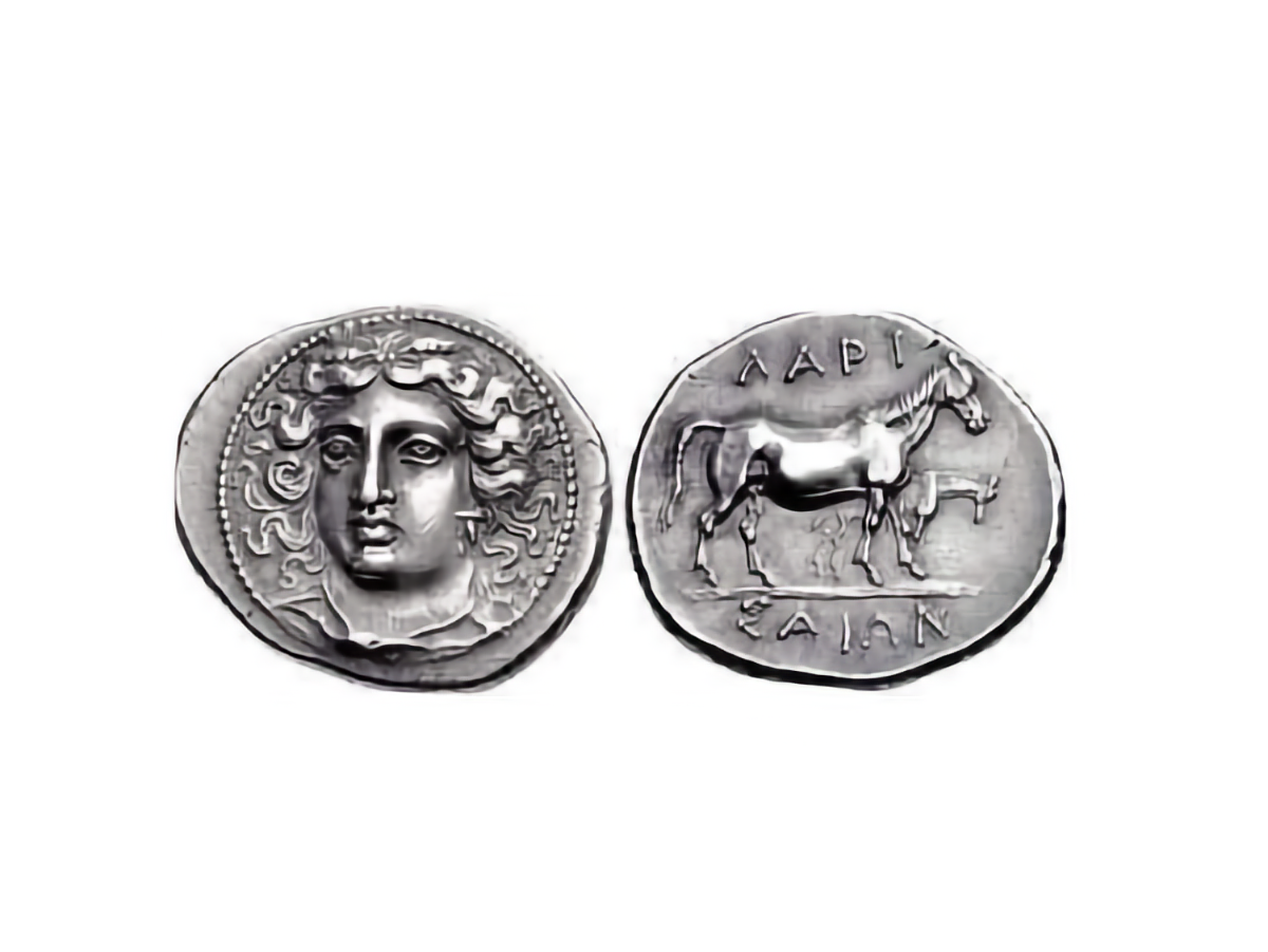 Εικ. Δραχμή της αρχαίας Λάρισας που απεικονίζει την νύμφη