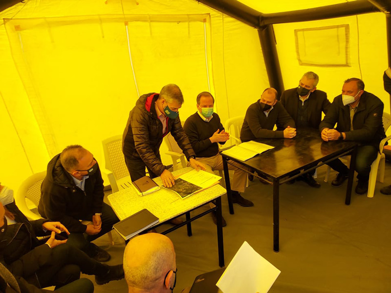 Μετά τη σύσκεψη ο Υπουργός Υποδομών και Μεταφορών επιθεώρησε τα τροχόσπιτα και είδε επί το έργον μηχανικούς του Υπουργείου, που πραγματοποιούν αυτοψίες σε κτίρια. Στη συνέχεια επισκέφθηκε το Μεσοχώρι Ελασσόνας, όπου τον υποδέχθηκε ο Δήμαρχος Ελασσόνας κ. Νίκος Γάτσας, καθώς και τα χωριά Αμούρι και Βλαχογιάννι, ενώ συναντήθηκε επίσης με μηχανικούς του ΤΕΕ Θεσσαλίας, που συνδράμουν εθελοντικά στις αυτοψίες.