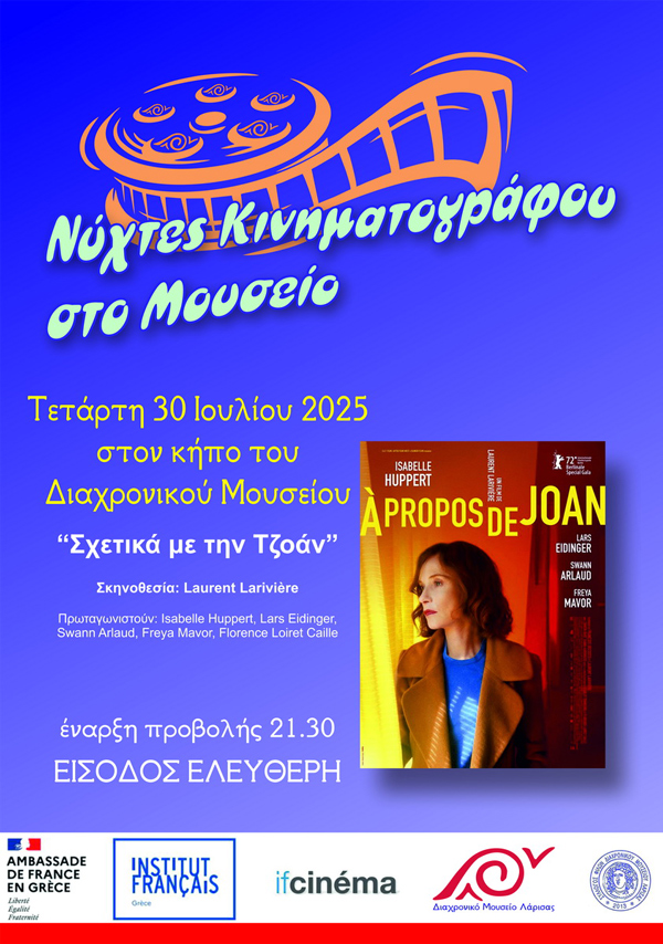 Οι Νύχτες Κινηματογράφου στον κήπο του Διαχρονικού Μουσείου, που διοργανώνονται από την Εφορεία Αρχαιοτήτων Λάρισας σε συνεργασία με το Γαλλικό Ινστιτούτο Λάρισας-Γαλλική Πρεσβεία και τον Σύλλογο Φίλων Διαχρονικού Μουσείου Λάρισας, συνεχίζονται με ακόμη ένα CINE-ραντεβού. Την Τετάρτη 30 Ιουλίου το κοινό θα απολαύσει στη δροσιά του λόφου Μεζούρλου την ταινία: