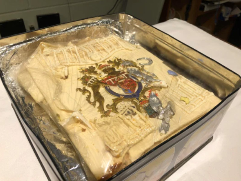 Αυτό το μεγάλο κομμάτι γλυκού, βάρους περίπου 800 γραμμαρίων, το είχε κρατήσει και διατηρήσει τυλιγμένο σε πλαστική μεμβράνη μία εργαζόμενη της βασιλομήτορος, η Μόιρα Σμιθ. Ανήκε σε μία από τις 23 τούρτες που παρασκευάστηκαν για τον βασιλικό γάμο, ο οποίος τελέστηκε στις 29 Ιουλίου του 1981.