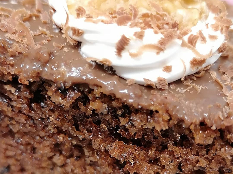 Τα στερεά τα ανακατεύουμε όλα μαζί το αλεύρι, το μπέικιν, την κανέλα,κακάο, γαρύφαλλο κοσκινισμένα στο μείγμα σιγά σιγά κάθε φορά και τα ανακατεύουμε με μια μαρίζ.