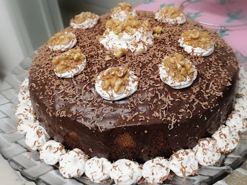 (Σιροπιάζουμε μέσα στην φόρμα εφόσον κρυώσει η καρυδόπιτα με ζεστό το σιρόπι)