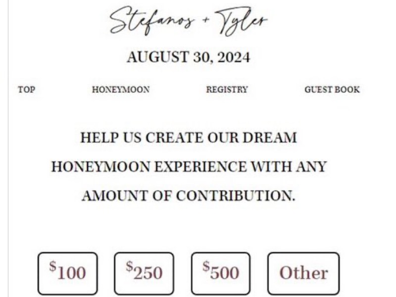 Στην ιστοσελίδα honeyfund.com, οι ενδιαφερόμενοι μπορούν να καταθέσουν ένα χρηματικό ποσό μέχρι 2.500 δαλάρια αλλά και να αφήσουν ένα σχόλιο ή μία ευχή για το ζεύγος.