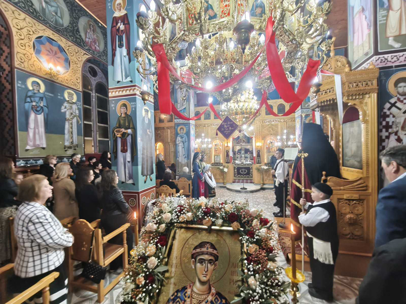 Η ατμόσφαιρα ήταν συγκινητική, με τις ψαλμωδίες να αντηχούν μέσα στον στολισμένο ναό και την ευλάβεια να κυριαρχεί. Ο Σεβασμιώτατος, στο κήρυγμά του, αναφέρθηκε στη ζωή και το μαρτύριο του Αγίου Δημητρίου, υπογραμμίζοντας το διαχρονικό μήνυμα της πίστης, της θυσίας και της αγάπης προς τον Θεό και τον άνθρωπο.