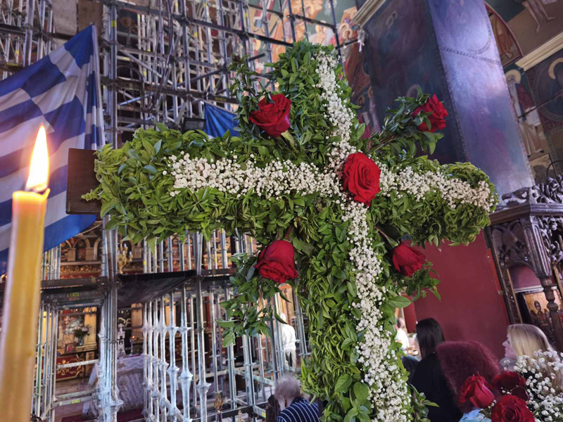 Με ευλάβεια και κατάνυξη τελέστηκε η Θεία Λειτουργία για την Ύψωση του Τιμίου Σταυρού στον Ιερό Ναό Αγίου Γεωργίου Τυρνάβου, προεξάρχοντος του π. Ιακώβου, παρουσία πιστών που προσήλθαν για να τιμήσουν τη μεγάλη αυτή εορτή της Ορθοδοξίας.