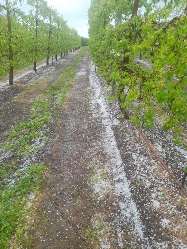 Οι περισσότερες καταστροφές εντοπίζονται σε κτήματα γύρω από το εργοστάσιο Παπαγεωργίου, όπου το χαλάζι «χτύπησε» δυνατά, αφήνοντας πίσω του σπασμένα φυτά και καρπούς στο έδαφος. Οι παραγωγοί κάνουν λόγο για ανεπανόρθωτες ζημιές, εκφράζοντας την ανησυχία τους για την επόμενη ημέρα.