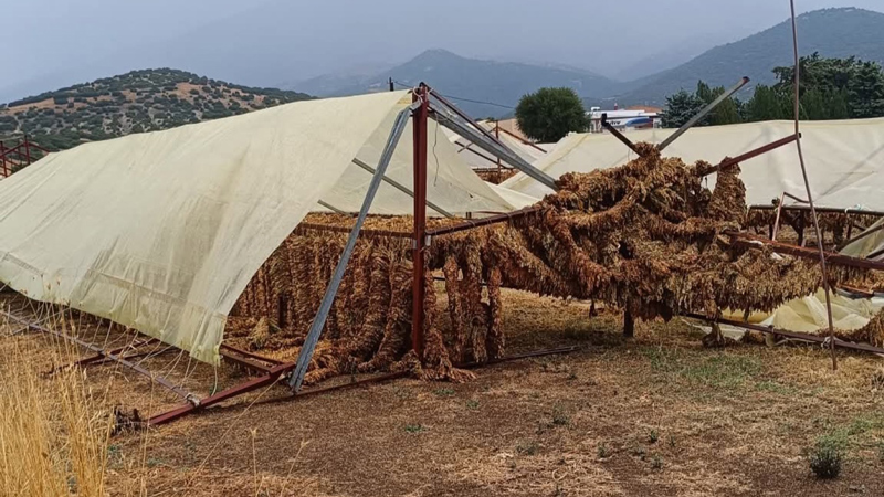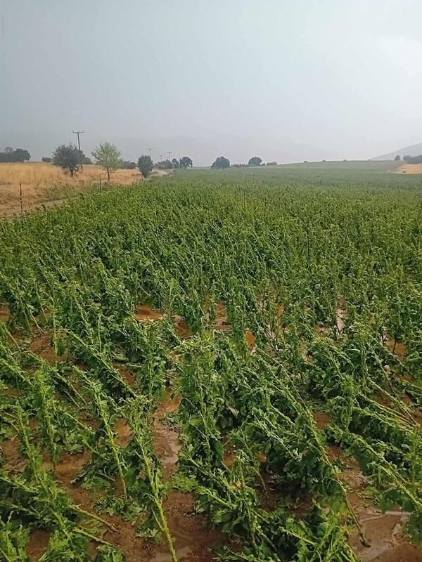 Το μεσημεριανό μπουρίνι και η έντονη χαλαζόπτωση που έπληξε την περιοχή της Ελασσόνας, προκάλεσε σοβαρές ζημιές σε καλλιέργειες αλλά και σε λιάστρες καπνού.