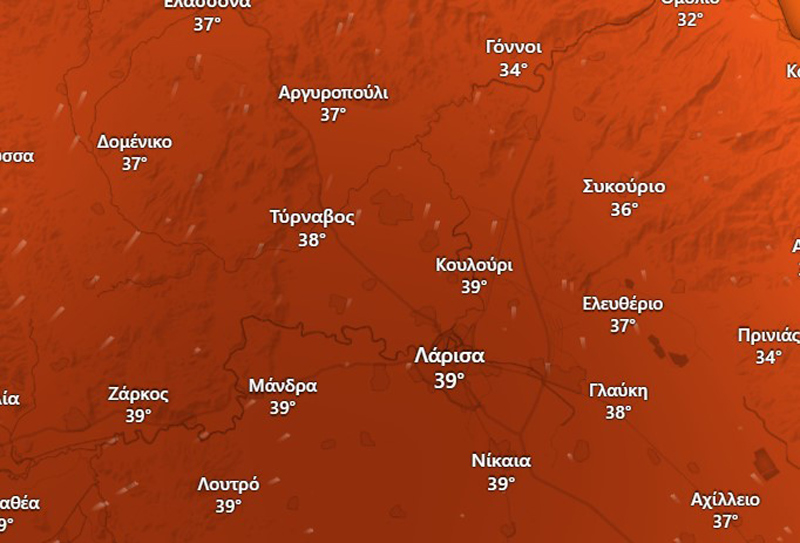 Σύμφωνα με την εφαρμογή windy Δευτέρα στην περιοχή του Τυρνάβου θα φτάσει τους 36 ενώ Τρίτη το θερμόμετρο θα δείξει 38.