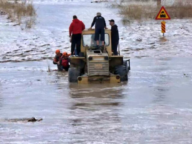 Πυροσβέστες επιβιβασμένοι πάνω σε τρακτέρ προσέγγισαν ένα χωράφι όπου ένας άνθρωπος είχε σχεδόν σκεπαστεί από τα νερά. Το περιστατικό συνέβη στον δήμο Κιλελέρ στη Θεσσαλία. Ο πυροσβέστης προσέγγισε τον άνδρα, του φόρεσε σωσίβιο και κράνος και με τη βοήθεια συρματόσχοινου τον τράβηξαν σε ασφαλές σημείο.