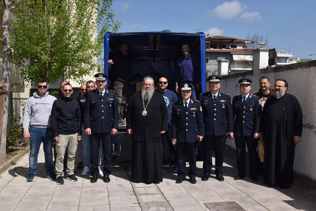Ενόψει του εορτασμού του Πάσχα, το προσωπικό της Γενικής Περιφερειακής Αστυνομικής Διεύθυνσης (ΓΕ.Π.Α.Δ.) Θεσσαλίας και της Διεύθυνσης Αστυνομίας Λάρισας, με την πολύτιμη αρωγή φίλων του Σώματος, συγκέντρωσαν τρόφιμα, τα οποία παραδόθηκαν στην Ιερά Μητρόπολη Λαρίσης και Τυρνάβου για την ενίσχυση των συσσιτίων της «Ο Επιούσιος».