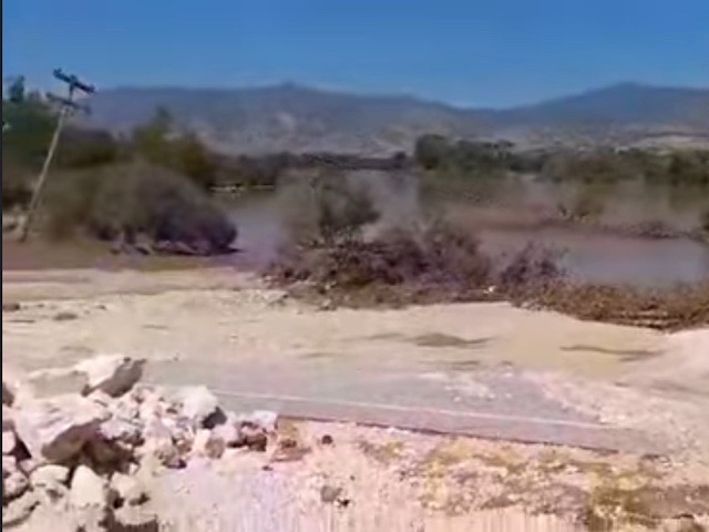 Το ποτάμι με τόσο δυνατή ορμή χάλασε το οδόστρωμα με την άσφαλτο ενώ γκρέμισε κυριολεκτικά το ανάχωμα.