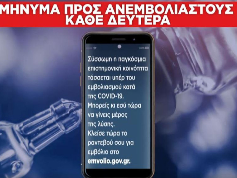 Από την προσεχή Δευτέρα και καθημερινά θα στέλνονται μηνύματα στα κινητά τηλέφωνα 450.000 ανεμβολίαστων.