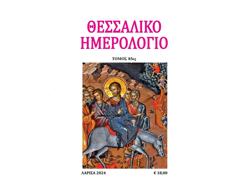 Κυκλοφορεί από τη Δευτέρα ο 85ος τόμος του Θεσσαλικού Ημερολογίου. Στο εξώφυλλο η Βαϊοφόρος, τοιχογραφία του 16ου αι. στο Μεγ. Μετέωρο, έργο της Κρητικής Σχολής (Φωτ. Βασ. Τσολάκης).