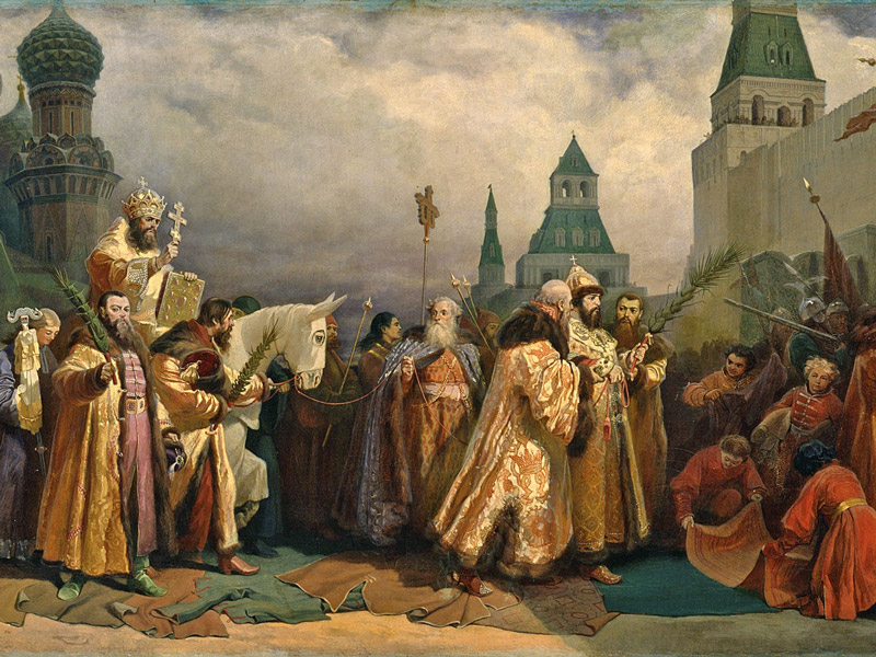 Κυριακή των Βαΐων στη Μόσχα με συμμετοχή του Τσάρου Αλέξανδρου Β’. (πίνακας του V. Greg. Schwarz, 1865).