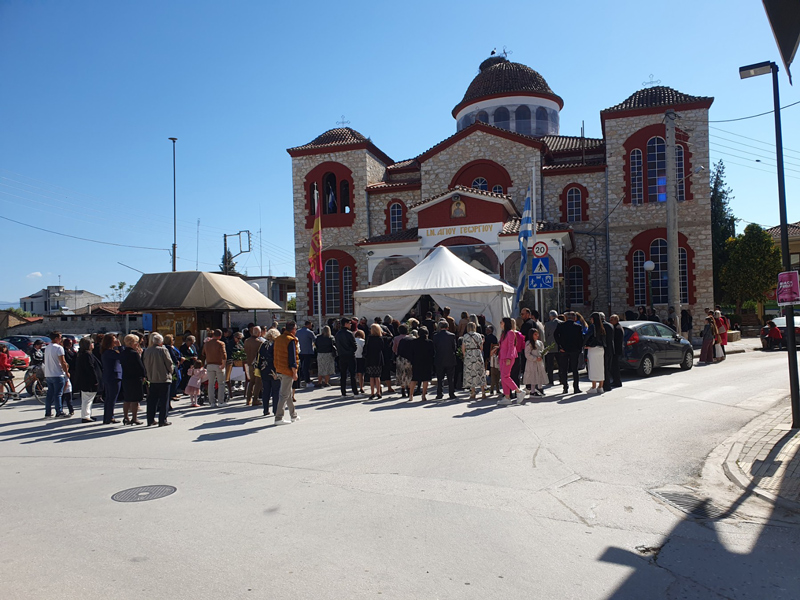 Μετά Βαΐων και Κλάδων υποδέχτηκαν και στο Τύρναβο οι πιστοί την έλευση του Ιησού Χριστού μετά την Ανάσταση του Λάζαρου σήμερα Κυριακή Των Βαΐων στο προαύλιο του Ιερού Ναού Αγίου Γεωργίου.