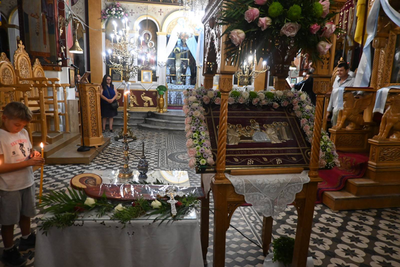 Με κατάνυξη και λαμπρότητα ξεκίνησαν το απόγευμα της Πέμπτης οι εορτασμοί για τη μεγάλη Θεομητορική εορτή της Κοίμησης της Θεοτόκου στον πρόσφατα συντηρημένο φερώνυμο ναό του Αμπελώνα.